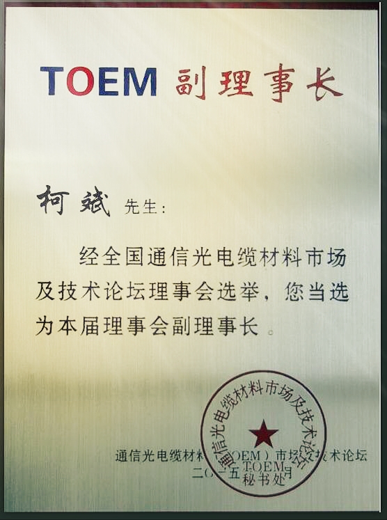 董事長(zhǎng)柯斌推選為全國(guó)通信光電纜材料市場(chǎng)及技術(shù)論壇理事會(huì)副理事長(zhǎng)
