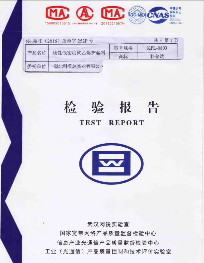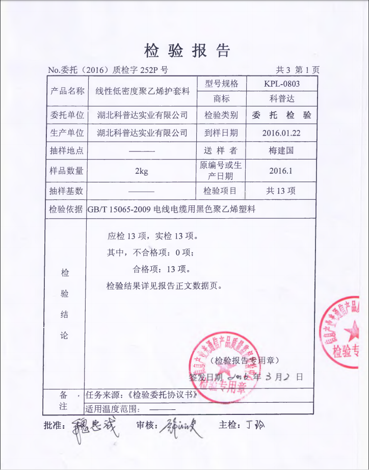 2016線性低密度護套料檢測報告(KPL-0803)