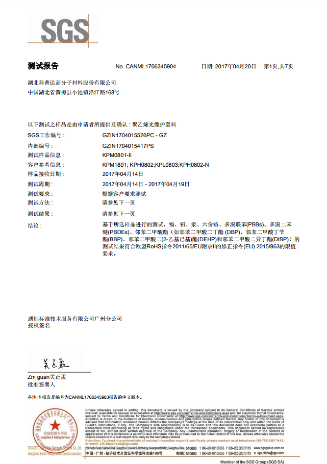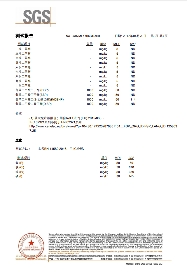 17年聚乙烯護套料RoHS和鹵素檢測報告