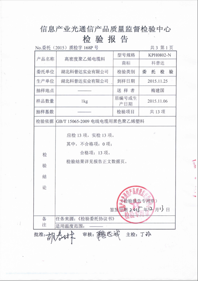 科普達產品主要有各種光纜護套料,榮獲湖北省名牌產品,守合同重信用企業。 榮獲多種國家資質認證包括:ISO9001質量管理體系認證、ISO14001環境管理體系及OHSAS18001職業健康安全管理體系認證。...