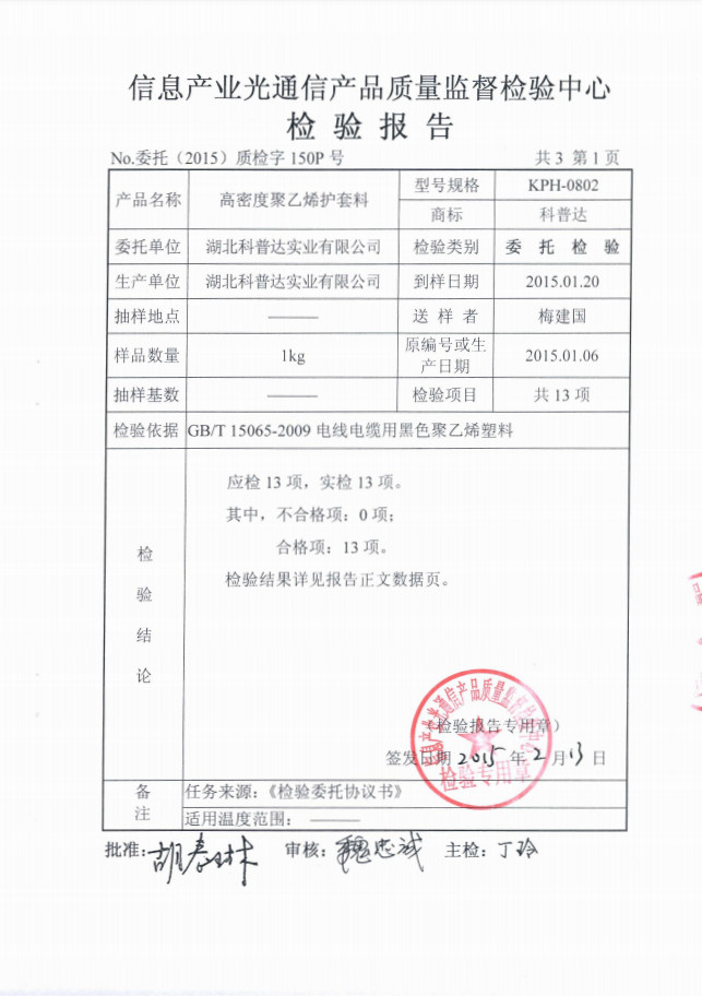 科普達產品主要有各種光纜護套料,榮獲湖北省名牌產品,守合同重信用企業(yè)。 榮獲多種國家資質認證包括:ISO9001質量管理體系認證、ISO14001環(huán)境管理體系及OHSAS18001職業(yè)健康安全管理體系認證。...